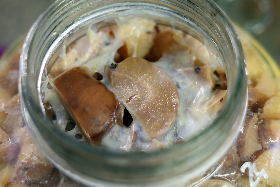 Sometimes when you open the lid after one moth, you might find a MoV forming on top of the apples, like on the picture below.